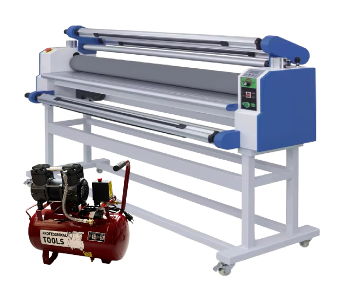 Laminadora en frío para gran formato 160 cm, ideal para montajes y laminados en frío de 1 cara. Monta y lamina simultáneamente.